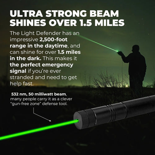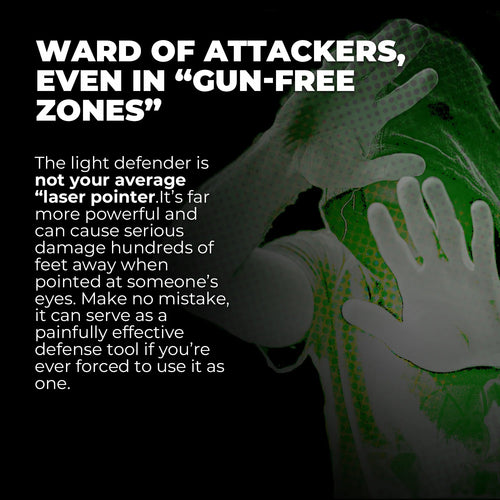The Light Defender is not your average “laser pointer.” It’s far more powerful and can cause serious damage from hundreds of feet away when pointed at someone’s eyes. Make no mistake, it can serve as a painfully effective defense tool if you’re ever forced to use it as one. But since it’s not technically classified as a weapon at all, you can carry it literally anywhere.