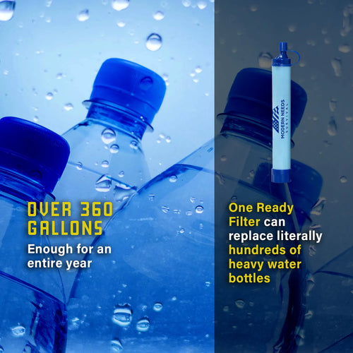 The Ready Filter doesn’t just keep you from getting sick if you have to drink dirty water in a pinch; it gives you ultra-pure water you can feel great about drinking as long as you have to. Since it removes 99.9% of all bacteria, parasites, and physical contaminants (including toxic microplastics), it gives you water that’s cleaner than what comes out of many home taps! It’s also totally BPA-free.